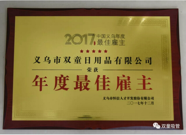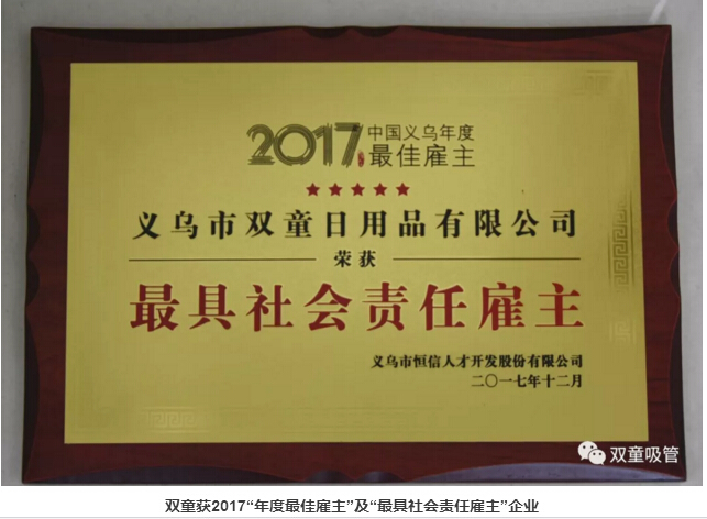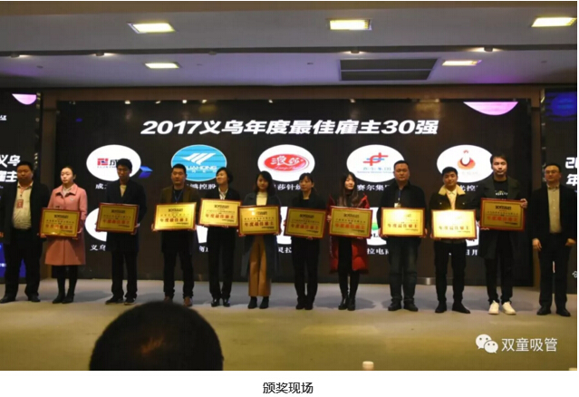 1月18日,2017義烏年度最佳雇主頒獎盛典暨人力資源高峰論壇驚喜舉辦!近百位企業(yè)負責人共同見證了義烏新一屆“最佳雇主”的誕生,“雙童”也名列其中,被評為2017中國義烏“年度最佳雇主”及“最具社會責任雇主”企業(yè)!