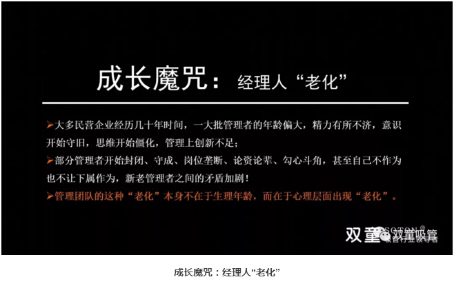 公司創(chuàng)辦初期聘任部分原國營企業(yè)的下崗管理層,這些人客觀上在企業(yè)發(fā)展中做出了巨大的貢獻。但到了2010年前后,其中的大部分管理層逐漸出現(xiàn)了“認知時間軸瓶頸”:他們依托于習慣思維,完全憑經(jīng)驗用老方法解決新問題,不愿意學習,創(chuàng)新意識低下,抵制變革,拒絕接受和應(yīng)用新興事物,團隊的成長遇到了瓶頸。