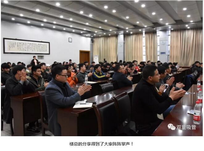 同時,樓總也引導同學們透過現(xiàn)象看本質,“雙童”之所以15年前建設節(jié)能降耗系統(tǒng),消滅所有的污染排放是因為“雙童”看的很遠,用“利他”去獲得“利已”!