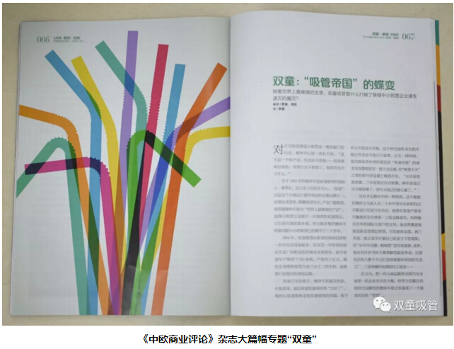 “遇見”這個(gè)時(shí)代,你還在談過往、經(jīng)驗(yàn)和成績嗎?企業(yè)局限于“舒適地帶”會(huì)導(dǎo)致風(fēng)險(xiǎn)來臨時(shí)而不知所措!前段時(shí)間,著名《中歐商業(yè)評論》雜志刊發(fā)了一期對“雙童吸管”的深度案例,其中用了長達(dá)十頁的篇幅闡述了“雙童”的蝶變過程,其官方微信發(fā)布的雙童案例也達(dá)到了近7000的閱讀量。想要了解“雙童”的朋友們,可千萬不能錯(cuò)過這篇精彩的文章哦!