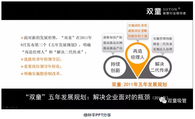 “經(jīng)理人老化”和“二代傳承的不確定性”被樓仲平視為中國民營企業(yè)面臨的兩座大山,許多同時(shí)代企業(yè)正是被這兩座大山阻住了去路。對“雙童”來說,第一座大山已基本翻越成功,目前正在為翻越第二座大山做準(zhǔn)備。