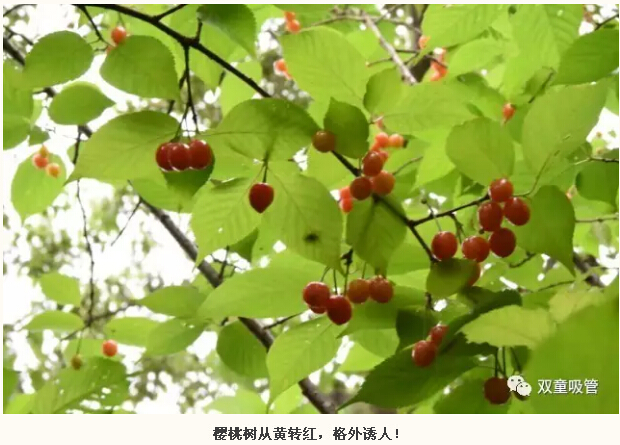 有句老話說得好:“櫻桃好吃樹難栽。”看“雙童”種下的這幾棵櫻桃樹,多精神,樹上結(jié)的果子也是不少呢!