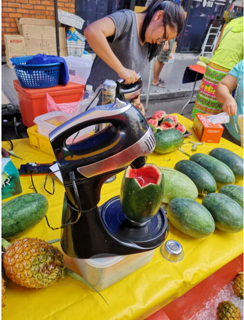 到了之后發(fā)現(xiàn),周日集市很大程度上和國內(nèi)的集市挺像的,來自義烏的我們敏銳地預(yù)測到這里的許多東西都是MADE IN YIWU,就少了許多剁手的沖動,哈哈。不過,還是有許多特色的小攤,比如抖音上的網(wǎng)紅西瓜,用打蛋機做的西瓜汁和菠蘿汁(菠蘿汁不推薦,西瓜汁不錯),還有各種海鮮干貨,咖啡,綠植,茶葉,手工小作品等等。后面逛了商場超市之后的我們后知后覺發(fā)現(xiàn),集市上的東西挺便宜,當(dāng)時就應(yīng)該買起來才對!如果大家有機會遇到加雅街的周日集市,別錯過購物的好機會啦!