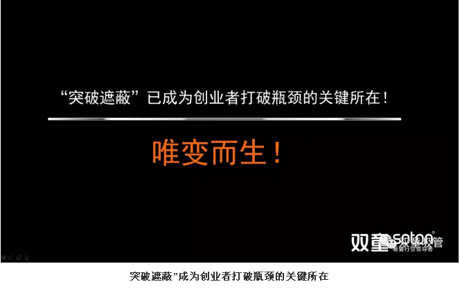 在當今巨變社會下,“變”成為這個時代沒有選擇的“選擇”!唯有“突破遮蔽”,創(chuàng)業(yè)者們才能打破自身瓶頸!親愛的粉絲們,你們明白了嗎?