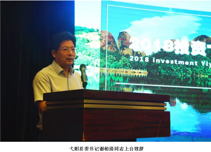 活動(dòng)開場(chǎng)后,弋陽縣委書記謝柏清同志上臺(tái)致辭,并介紹了弋陽縣的基本情況,宣傳和推介了弋陽縣主導(dǎo)產(chǎn)業(yè)的投資發(fā)展具體情況。他由衷希望能夠促進(jìn)各類要素和創(chuàng)新資源向弋陽集聚,并誠摯邀請(qǐng)各位嘉賓到弋陽走一走、看一看,領(lǐng)略青山綠水的魅力,尋找投資合作的機(jī)遇、開拓互利共贏的領(lǐng)域。
