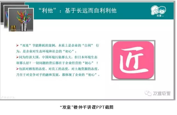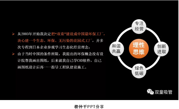 很多來“雙童”參觀的客人們,都會(huì)驚嘆于我們這座零排放無污染的生態(tài)節(jié)能工廠,并不斷追問:“到底是哪家建筑設(shè)計(jì)公司給你們?cè)O(shè)計(jì)的廠房?”每當(dāng)此時(shí),吸管妞都會(huì)自豪地回答:“其實(shí)都是我們當(dāng)家人樓總自己設(shè)計(jì)的廠房!”那么,早在十多年前,整個(gè)社會(huì)環(huán)境都沒有倡導(dǎo)節(jié)能環(huán)保理念的當(dāng)時(shí),“雙童”樓仲平為何會(huì)選擇帶領(lǐng)企業(yè)走這條發(fā)展道路呢?這背后也有一個(gè)精彩的故事。下面,吸管妞就借“雙童”樓仲平在浙江大學(xué)授課時(shí)的一段視頻,揭秘其中的奧秘!