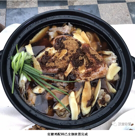 這道菜做起來可不簡單哦!除了有雞、紅糖、豬腳等主料外,還需加入七種調(diào)料,經(jīng)過12道工序后,用土鍋柴火燒制,并用稻草灰蓋鍋密封才能烹飪出更好的味道。 經(jīng)過大半天的燒制,“義烏紅糖雞”大功告成,色香味俱全?。?/span>PS:嫩雞至少要燉1個(gè)小時(shí),老母雞至少要燉2—3個(gè)小時(shí))