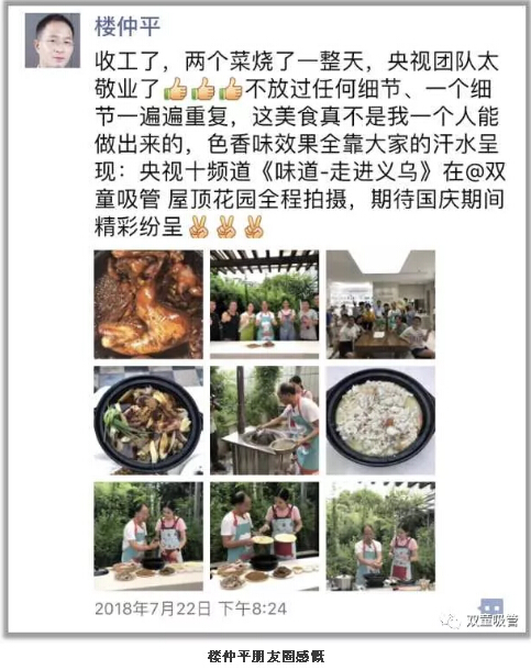 節(jié)目拍完之后,當(dāng)家人樓仲平也在朋友圈感慨兩個(gè)菜竟然燒了一整天,一個(gè)個(gè)流程真是把大家“折騰”死了。央視團(tuán)隊(duì)真是太敬業(yè)了,注重每一個(gè)細(xì)節(jié),美食的制作和拍攝全靠大家的汗水呈現(xiàn)!