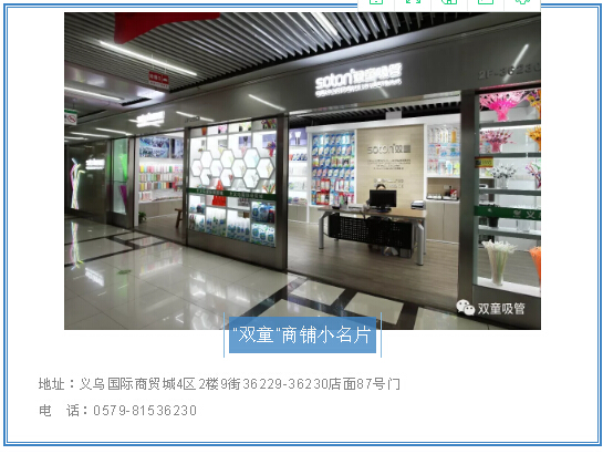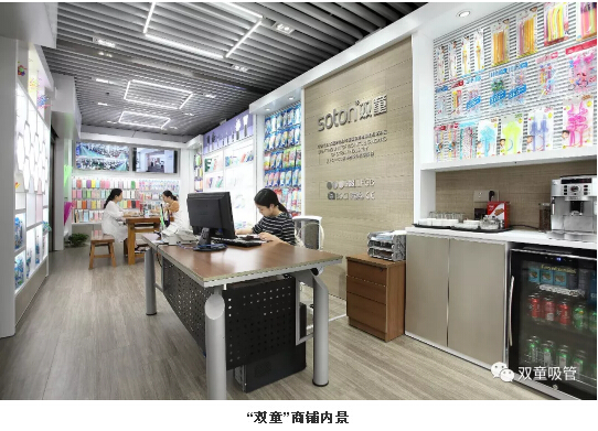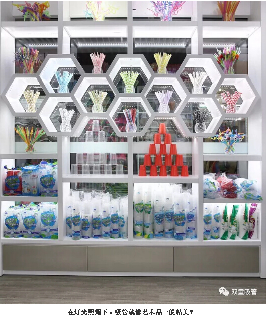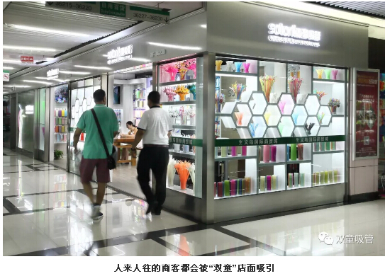 走進“雙童”商鋪,琳瑯滿目的吸管在明亮燈光的照耀下顯得尤為精致,細膩、溫馨、明快、簡約的裝修風格則給了客戶更好的視覺體驗,現代感十足!