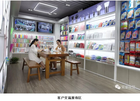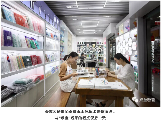 商鋪內共設置了可降解吸管、創(chuàng)新吸管、藝術吸管、超市流通吸管等品類的吸管產品展示區(qū),以及辦公區(qū)、會客區(qū)、茶水接待等區(qū)域,可謂是分工明確,井然有序!