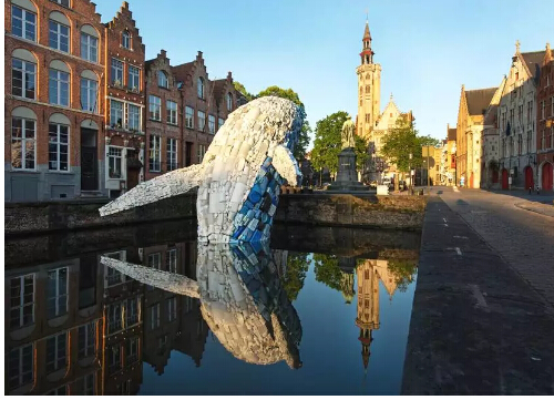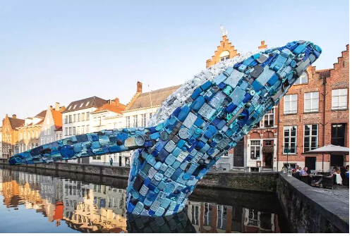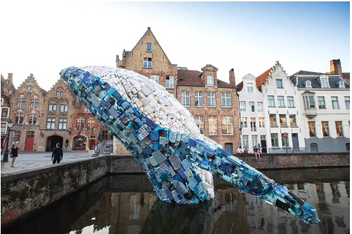 該作品以躍姿鯨魚的被安置在比利時城市的主要運(yùn)河中供游客參觀,這一令人印象深刻的裝置作品旨在讓人們關(guān)注海洋中數(shù)量巨大的塑料廢棄物等海洋垃圾壞境問題。