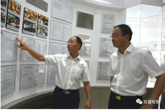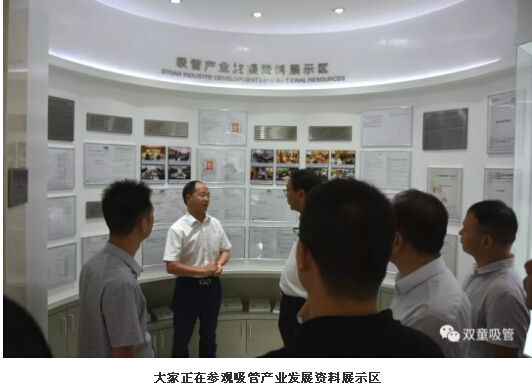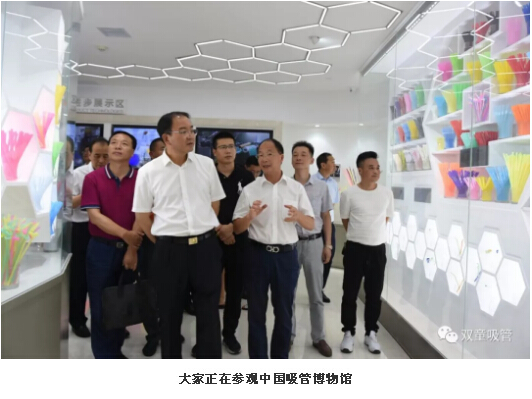 “雙童”樓仲平帶領(lǐng)張副省長一行來到中國吸管博物館。在參觀過程中,張副省長一行了解了吸管最開始的制作工藝以及現(xiàn)代吸管的制作過程。