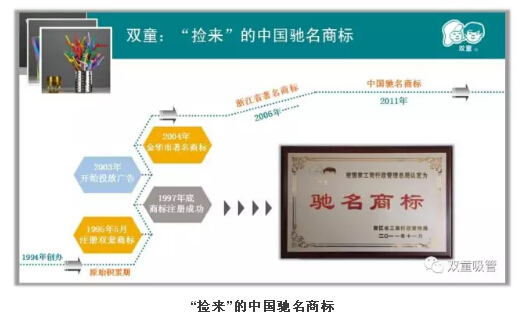 就在許多人認為吸管這樣的產品不值得做品牌時,“雙童”卻早在1995年就已經(jīng)注冊了商標,就此走上了品牌發(fā)展之路。