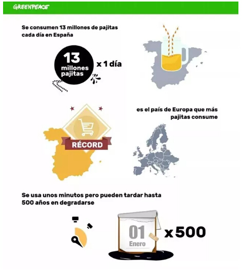 在西班牙,每人每年消耗110根吸管,平均每三天一根。目前,綠色和平組織對此發(fā)出強烈批評,要求人們停止使用塑料吸管等一次性塑料產(chǎn)品。