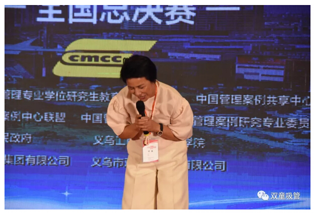 而當(dāng)主持人請(qǐng)俞董上臺(tái)發(fā)言時(shí),俞董激動(dòng)地現(xiàn)場(chǎng)鞠了三個(gè)躬,由衷感謝了義烏市委市政府、組織方、評(píng)委老師和參賽學(xué)生。她感慨道,每支隊(duì)伍的水平都非常高,讓作為評(píng)委的她十分難以抉擇!她實(shí)在想象不到這場(chǎng)比賽可以做到如此的精彩絕倫,能夠?qū)崒?shí)在在為企業(yè)提供有效的戰(zhàn)略指導(dǎo)!