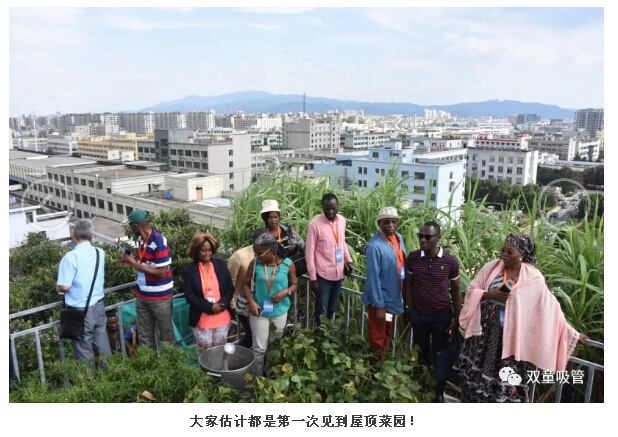 一進(jìn)“雙童”,非洲友人們似乎進(jìn)入了“奇妙世界”!到了屋頂菜園,大家不由得發(fā)出了陣陣驚呼,按捺不住拍照的心情,開(kāi)啟了瘋狂拍照模式!“咔嚓,咔嚓”的拍照聲,是對(duì)“雙童”別樣的肯定!