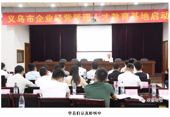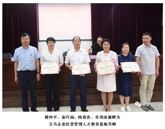 義烏市副市長施文臻、義烏市經(jīng)信委副主任姚咸明、義烏工商職業(yè)技術(shù)學(xué)院校黨委書記王振洪、學(xué)院校黨委委員副院長何少慶等領(lǐng)導(dǎo)出席了此次會議,“雙童”樓仲平也受邀參加了此次活動,并被聘為義烏市企業(yè)經(jīng)營管理人才教育基地導(dǎo)師。