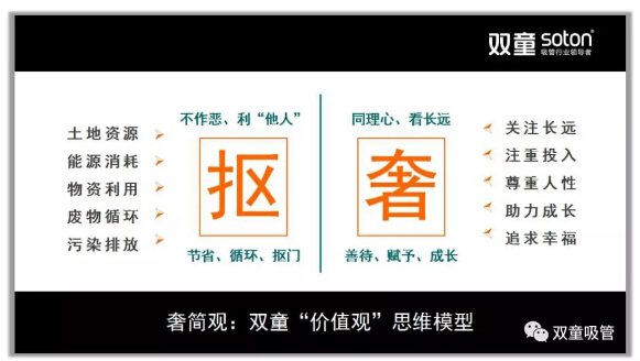 首先,樓仲平分享道:了解“雙童”的人都知道,“雙童”給員工提供的都是五星級硬件設(shè)施,但我卻常常告誡前來參觀的團(tuán)隊們:千萬不要被“雙童”的表象所蒙騙了,一定要透過表象理解背后的深層邏輯!