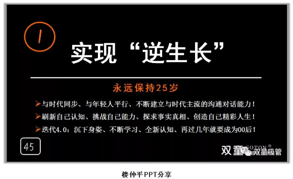 最后,樓仲平也激勵在座的創(chuàng)業(yè)者們,一定要跟上時代,跟上年輕人。因為在當(dāng)今時代,年輕人能快速適應(yīng)科技進(jìn)步并與時俱進(jìn),并且有天然的接受能力。所以“雙童”樓仲平一直將自己定位在“25”歲!因為年輕,才會不斷學(xué)習(xí)去認(rèn)知世界;因為年輕,才可能與年輕人為伍而保持激情;因為年輕,才能去擁抱這個高速變化的世界而更新迭代!