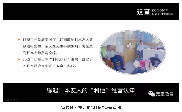 1998年,“雙童”樓仲平結識了一位旅美日本友人桑原道昭先生。桑原道昭先生在美國待了45年,會一點漢語。他會和樓仲平交流做生意的看法,并用日本人的視角和思想解讀節(jié)能環(huán)保、節(jié)約土地、員工關懷等方面的話題。