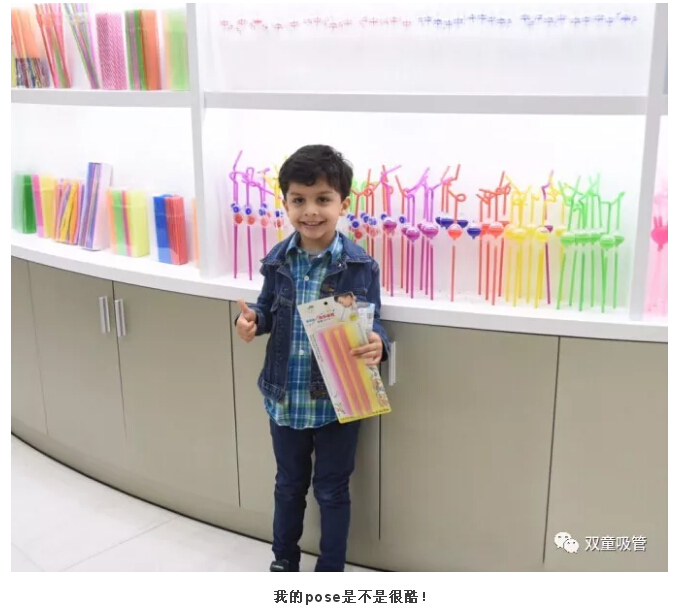 瞧,隨行而來的外國小朋友看到這么多各種各樣的吸管也是開心不已,開心地擺起了各種帥氣的POSE呢!