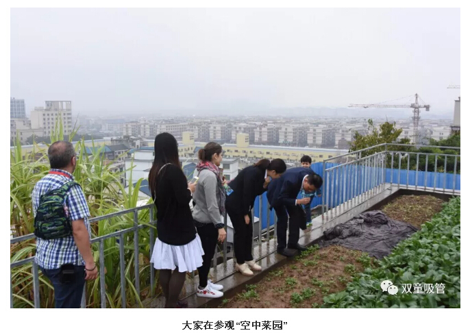 最后,大家來到了“空中菜園”,一走進(jìn)菜園,大家看到眼前的一大批蔬菜瓜藤,仿佛一下子進(jìn)入了另外一個世界??旨{女士對“雙童”的屋頂上竟然種了這么多的“寶貝”感到不可思議!