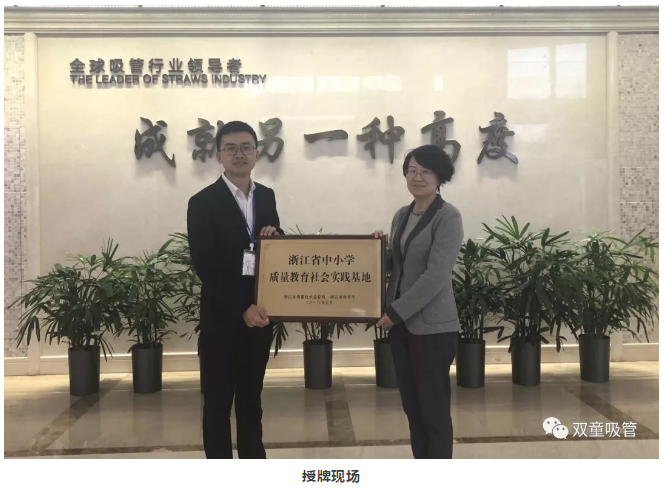 11月2日,義烏市黃楊梅小學的幾十位小學生們在義烏市市場監(jiān)督管理局及教育局的組織安排下,來到“雙童”參觀游學。原來,“雙童”剛被評選為“浙江省中小學質量教育社會實踐基地”,在游學過程中,義烏市市場監(jiān)督管理局黨委委員、總工程師龐晨瑩與“雙童”總經理李二橋進行了授牌儀式!