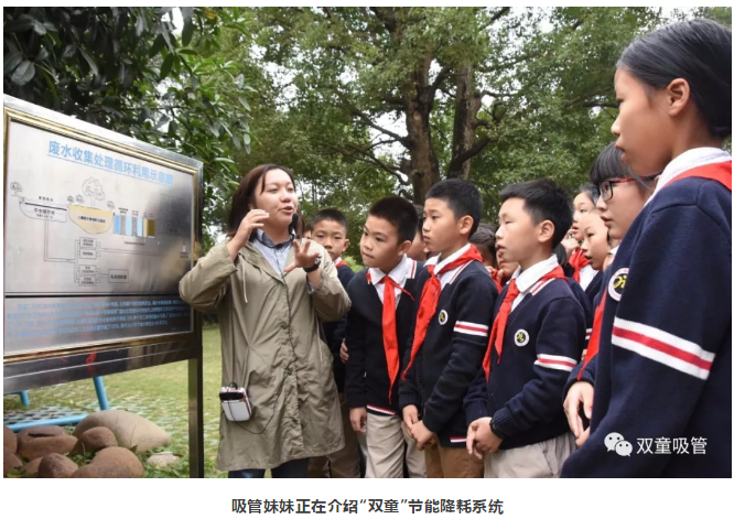 在介紹“雙童”節(jié)能降耗系統(tǒng)時,吸管妹妹介紹了“雙童”員工產生的廢水、雨水都會收集起來并進行循環(huán)利用。雨水處理后可用于員工生活用水,廢水處理后用于綠化噴淋、馬桶沖水等,每年都為企業(yè)省下近百萬元!孩子們聽后直呼好神奇!