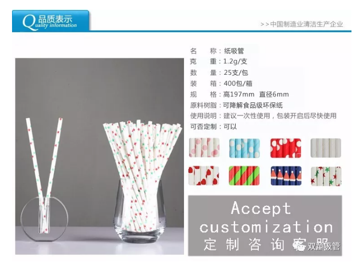 相對于塑料吸管,紙質(zhì)吸管以食品接觸類原紙為主要材料,并能用大豆基油墨印刷各類花色,在顏色鮮艷飽滿的同時,確保安全無毒無異味,在回收廢棄后三到四個月內(nèi)可完全降解,符合歐美國家對食品安全包裝的衛(wèi)生要求,可用于生日派對、餐飲連鎖、家庭消費、兒童DIY用具等各類場所!