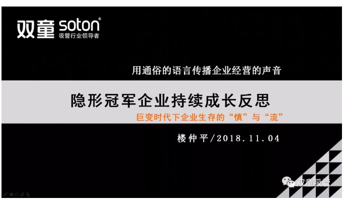 大會現(xiàn)場,樓仲平做了《隱形冠軍企業(yè)持續(xù)成長反思——巨變時代下企業(yè)生存的“慎”與“流”》主題演講,圍繞企業(yè)生存的“慎”與“流”二字展開,講述了他對于中國企業(yè)持續(xù)成長的反思和心得,下面就讓我們一起來看看吧!