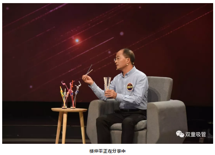 “雙童”樓仲平上場后,主持人趙丹軍就被桌子上的各類吸管所吸引啦!樓仲平也向在場觀眾介紹了美觀環(huán)保的可降解吸管和極具特色的創(chuàng)新吸管。