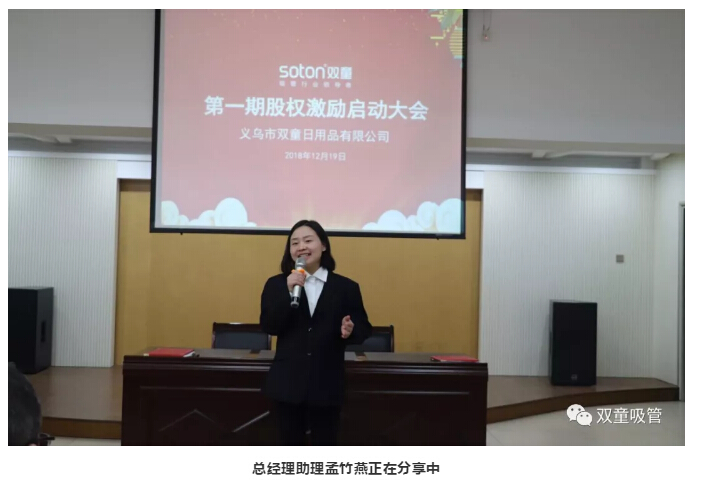 12月19日,雙童吸管第一期股權(quán)激勵啟動大會隆重舉行,“雙童”12位新晉股東脫穎而出!他們大多都是從基層做起,完成了從打工仔到新晉股東的勵志蛻變!