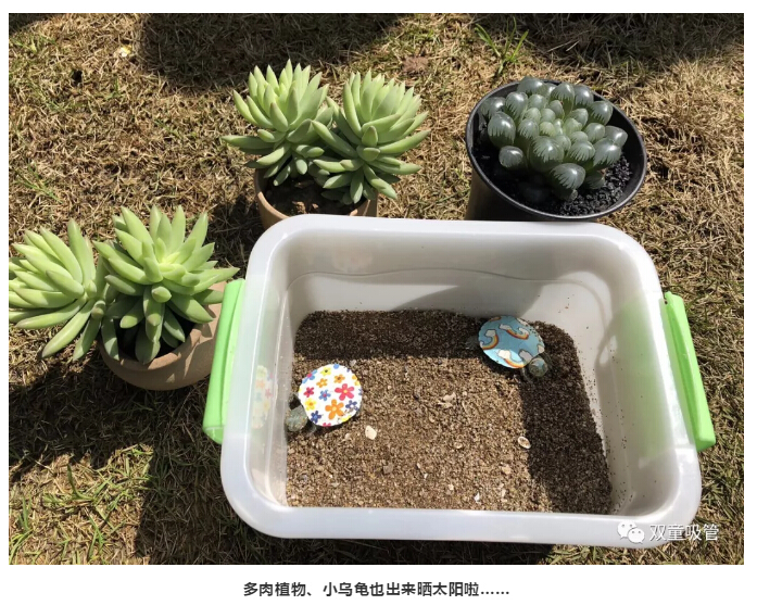 “雙童”寶貝們也按耐不住了,來(lái)到草坪上嬉戲玩耍!不過(guò),寶貝們可得小心哦,因?yàn)椴萜荷线€曬著萌萌的多肉植物,可愛(ài)的小烏龜呢!