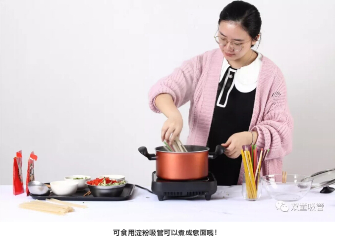 用“雙童”可食用淀粉吸管煮面條,不論是湯面、醬面還是拌面,那味道都是杠杠滴!連懷孕了的吸管妞和年幼的小朋友都能放心享用哦!