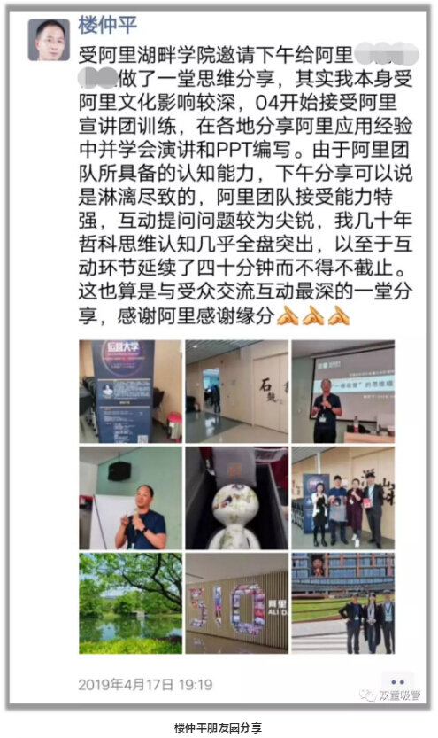 在提前一個(gè)月預(yù)約樓仲平課程的過程中,阿里巴巴方也希望樓仲平講一些能夠促進(jìn)內(nèi)外思維碰撞的課程,這也正好與樓仲平近年來的課程主題十分吻合。因此,對(duì)于再次和阿里巴巴結(jié)緣,樓仲平也在朋友圈里感慨到:感謝阿里感謝緣分!