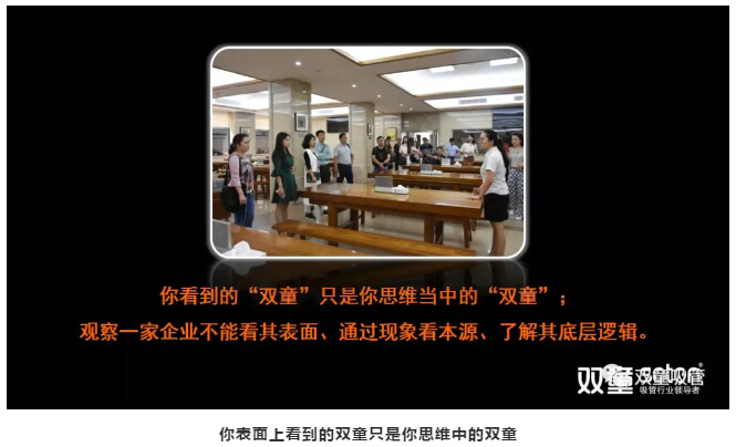 樓仲平以“雙童”為例:你所看到的“雙童”一切都是假象,如果你學(xué)了只有害處?!半p童”的餐桌是20000元一張,你可能會(huì)覺得一張桌子20000元很貴,但是你一定要洞透‘雙童’為什么會(huì)這么做,企業(yè)這樣做的底層邏輯在哪里,唯有你探究到它的底層邏輯,才是亙古不變。