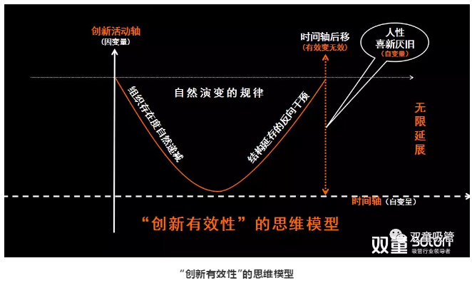 經(jīng)過前兩個(gè)“思維模型”的鋪墊,最后,樓仲平引導(dǎo)大家認(rèn)知:昨天還是“創(chuàng)新”的東西,今天就未必還是“新”。所以,“創(chuàng)新”是有“時(shí)間軸”的,隨著“時(shí)間軸”不斷后移,原有的“創(chuàng)新”有效變成了無效,創(chuàng)新活動(dòng)也就“無窮無盡”!