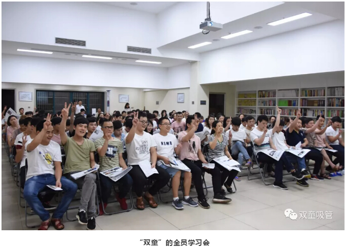 “雙童”,為了能夠在企業(yè)內(nèi)部形成濃厚的學(xué)習(xí)氛圍和有效的學(xué)習(xí)機(jī)制,我們?yōu)閱T工制定了長遠(yuǎn)的學(xué)習(xí)規(guī)劃和目標(biāo)。首先,在“雙童”每個(gè)月都要舉辦全體員工的學(xué)習(xí)會(huì),確保所有員工每月有累計(jì)八小時(shí)的學(xué)習(xí)和培訓(xùn)。無論是掃地阿姨還是看門叔叔,都必須參加全員學(xué)習(xí)會(huì),以提高自身認(rèn)知水平!