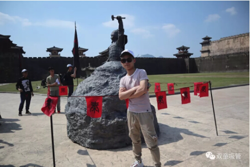 首先,“雙童”人到達(dá)了游玩第一站——秦王宮。一下車,大家就感受到一股撲面而來(lái)的歷史氣息!原來(lái),秦王宮是陳凱歌為了拍攝《荊軻刺秦王》這部電影而建造的,后來(lái)還吸引了《英雄》、《漢武大帝》、《尋秦記》等大片到這里拍攝。一不留神,大家都已經(jīng)開(kāi)始“穿越”啦,等等妞啊!