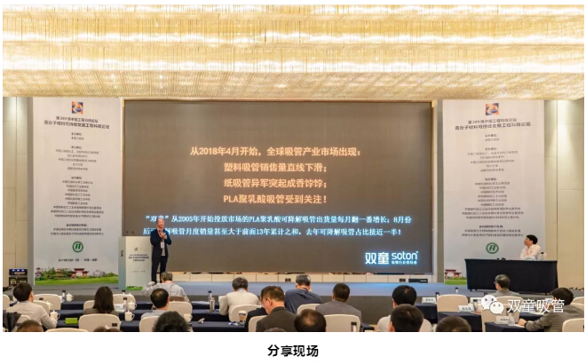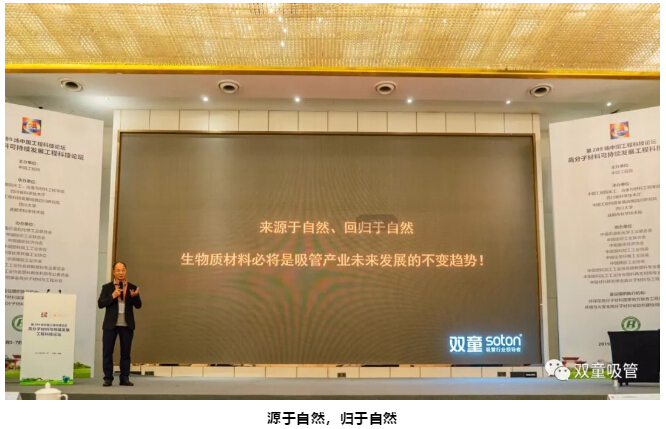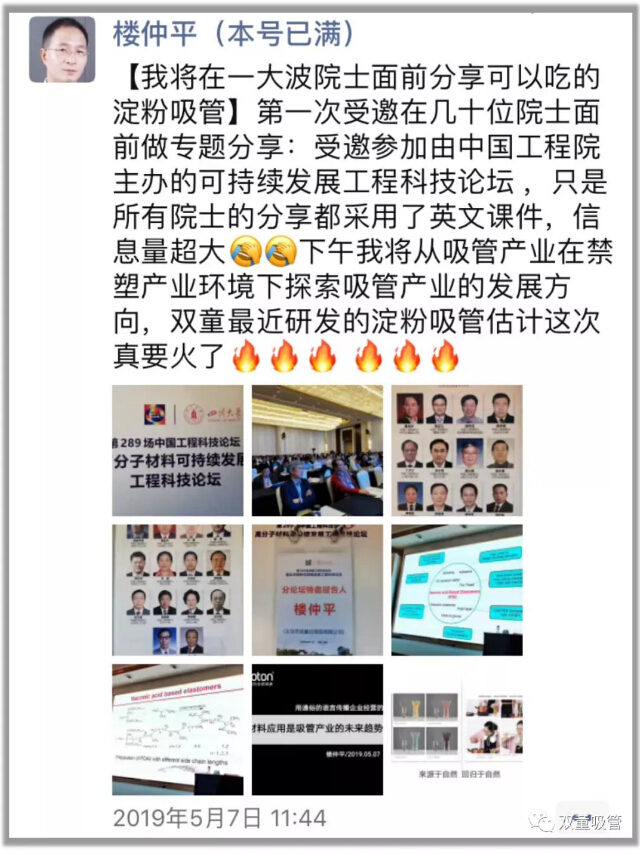 在這樣“談笑有鴻儒,往來無白丁”的重要場合,所有院士的分享都采用了英文課件,信息量超大。作為受邀分享嘉賓之一,“雙童”樓仲平也從吸管產(chǎn)業(yè)角度出發(fā)分析在禁塑大趨勢下吸管行業(yè)的發(fā)展方向,為大家?guī)砹?/span>《生物降解材料應(yīng)用是吸管產(chǎn)業(yè)的未來發(fā)展趨勢》主題分享!