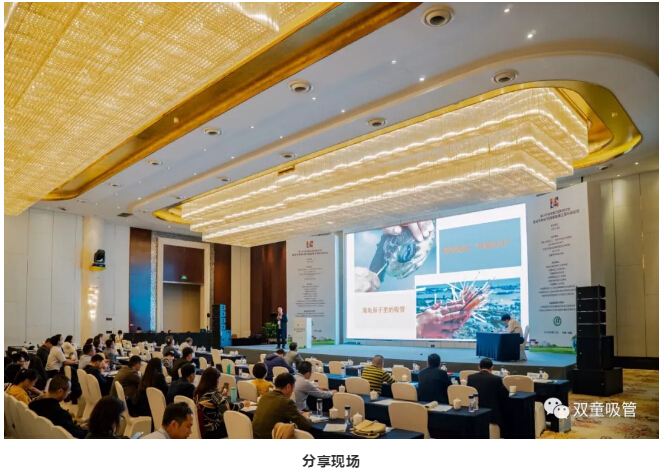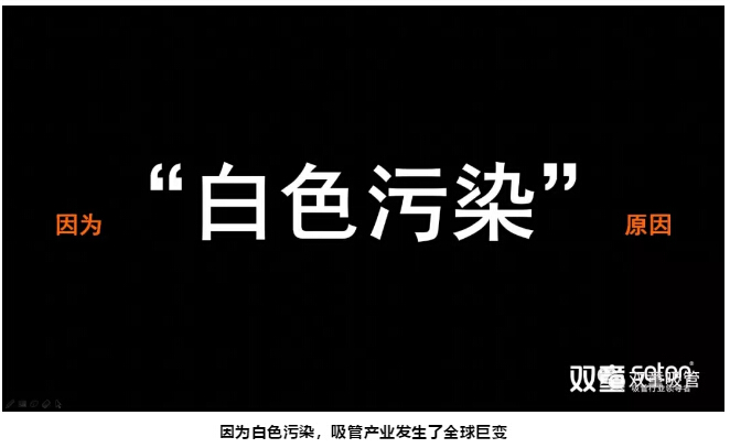 首先,樓仲平用一組精美的產(chǎn)品圖片向大家展示了“雙童”各式各樣的創(chuàng)新吸管,打破了大家認為吸管是“低、小、散、弱”小商品的傳統(tǒng)認知。而當大家都還沉浸在吸管還可以有這么多花樣的認知時,樓仲平卻話鋒一轉(zhuǎn),向大家說明:“看起來很美的吸管產(chǎn)業(yè)突然有一天發(fā)生了全球巨變!”