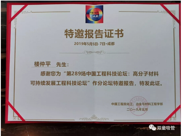 另外,“雙童”樓仲平此行分享還有一個驚喜呢!在他分享結(jié)束后,組織方為他當場頒發(fā)了中國工程院科技論壇簽發(fā)的特邀報告證書呢!吸管妞聽說這本證書將對評定職稱作用巨大,不知道會不會對我們樓大大也有大用處呢?