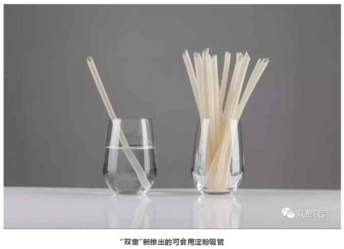 除此之外,“雙童”歷經(jīng)三年潛心研發(fā),新推出了可食用淀粉吸管,是完全采用小麥、大米、玉米、木薯、土豆等天然農(nóng)作物淀粉,經(jīng)高溫、高壓、熟化、擠出、烘干精制而成!