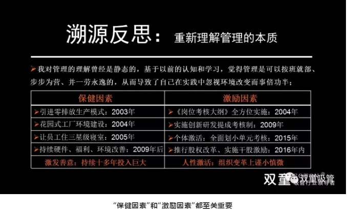 “雙童”樓仲平也曾在學(xué)習(xí)會(huì)上談到,員工與組織的關(guān)系就是一種彼此交換、彼此協(xié)作、彼此默契、彼此期望的雇傭關(guān)系,所以本質(zhì)上就無法像對待“家人”一樣對待員工,否則就會(huì)出現(xiàn)雙方彼此期待的背離,從而給雙方帶來傷害。