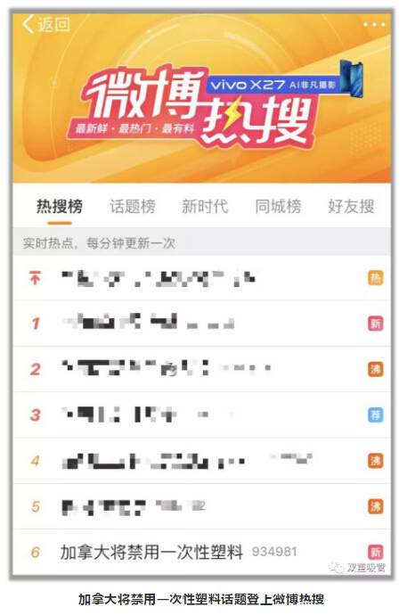 昨天下午,一則#加拿大將禁用一次性塑料#的話題迅速登上了微博熱搜榜,各大媒體持續(xù)報(bào)道關(guān)注,引起民眾極大關(guān)注!