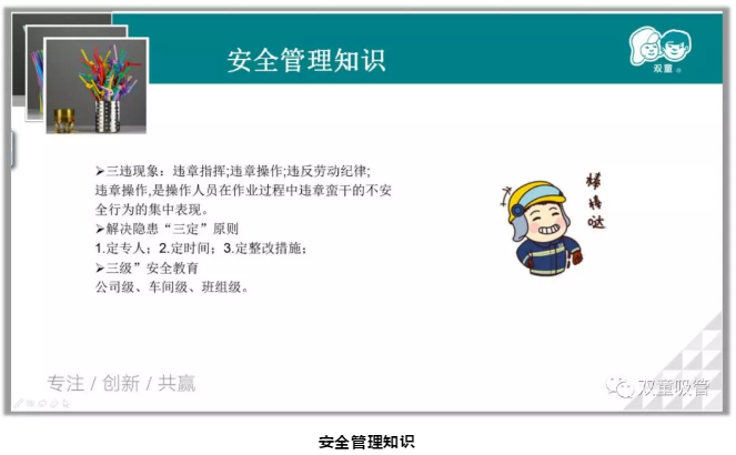 每到安全月,我們都會(huì)舉辦安全主題的學(xué)習(xí)會(huì)。今年的6月同樣也不例外。近日,“雙童”全體員工圍繞著“安全”這件大事開展了專題學(xué)習(xí)會(huì)!接下來,吸管妞就帶大家一起來學(xué)習(xí)安全知識(shí)吧!