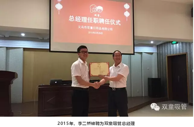 16歲初中畢業(yè)就進(jìn)“雙童”,在“雙童”娶妻生子,一干就是18年。從普工做起,一步一個(gè)腳印,而立之年升任總經(jīng)理。在“雙童”這個(gè)大家庭里,李二橋童話般的成長經(jīng)歷,很好地詮釋了這家企業(yè)價(jià)值觀:尊重勞動(dòng)、尊重知識、尊重人才。