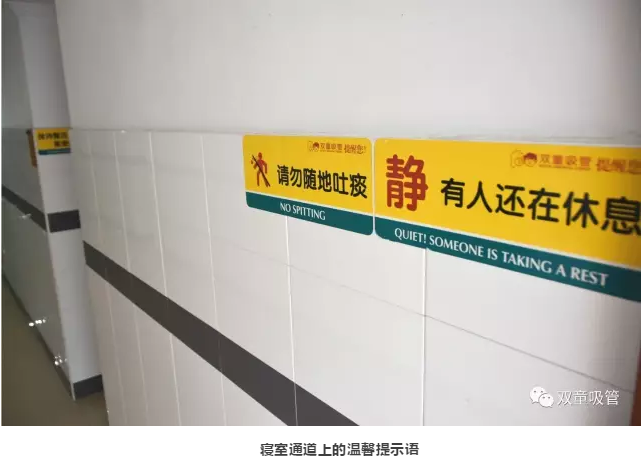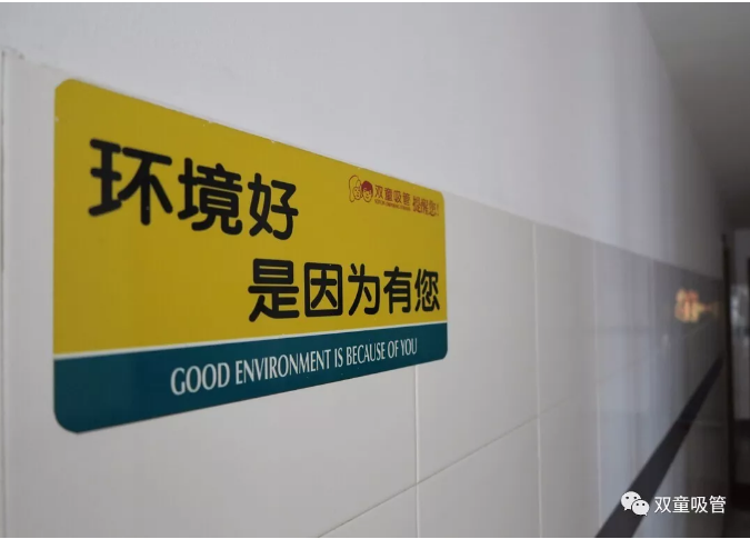走進(jìn)“雙童”廠區(qū),第一印象是環(huán)境很整潔、衛(wèi)生。在員工宿舍區(qū),裝修了十多年的白墻有些泛黃,卻找不出一個(gè)手印或鞋印。這是為什么?樓道口的一塊標(biāo)語牌似乎道出了答案:環(huán)境好,是因?yàn)橛心?/span>