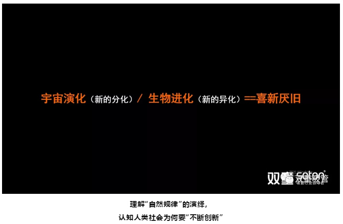 樓仲平繼續(xù)分享道:要真正認知“創(chuàng)新”,首先要多去學(xué)習(xí)那些看似“無用”的知識,運用天文學(xué)、生物學(xué)、物理學(xué)的宏觀角度,理解在“自然規(guī)律”的演繹和進化,再通過逐級推理的方式去認知人類社會為什么要“不斷創(chuàng)新”。