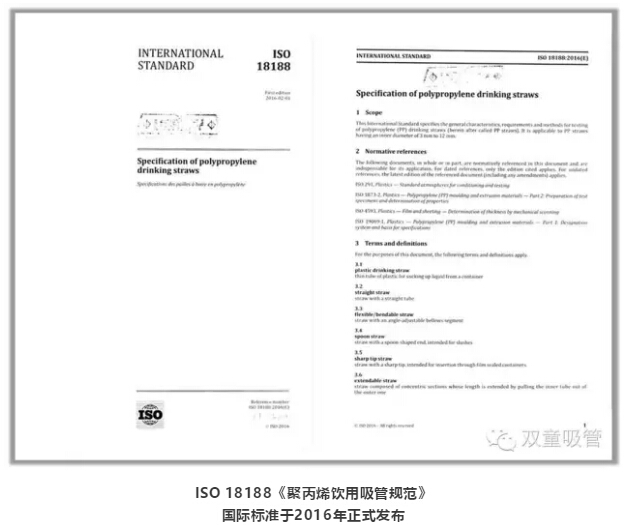 2016年6月27日,“雙童”主導(dǎo)并起草的《聚丙烯飲用吸管規(guī)范》ISO國際標(biāo)準(zhǔn)文本發(fā)布,這意味著“雙童”的吸管產(chǎn)品走在了世界的最前列。